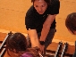 立ち上がりの際に、膝関節へかかるストレスをいかに軽減する事ができるかが鍵であり、膝に手をついて股関節屈曲練習をしていくことがかなり有用だそうです。手をつくことで上半身質量を一部脛骨に伝搬し、背部や股関節にかかるモーメントを減らすことができるために、筋出力が少なくてすむ。それに加えて、手で脛骨沿いに下方へ圧を加える事で足部機能を意識的に働きかけもCOPの認知もトレーニングされる。立ち上がりに対するアプローチは段階的に行っていくべきであり、もちろん力学的にそれぞれの相の要素を捉えていかないといけません。