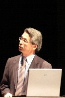 弓木野先生は幼少期に右上腕を事故により切断された話をされたが、生涯それでできなかったことはないという自負と、趣味である釣りの餌の針つけ、竿の振り方を紹介していただいた。 講義の前夜の懇親会にて、「なぜ、発明のできる人になられたのですか?」という質問に、「片手になってからずっと、何かを考えるという努力を常にしていました」という言葉が返ってきた。 人間はハングリーであるから、目標ができる。その目標にストイックに挑戦する。 満足している状況でも、決して満足することなく夢や目標を実現するために、努力することと思い続けることは未来を切り開くのだと。