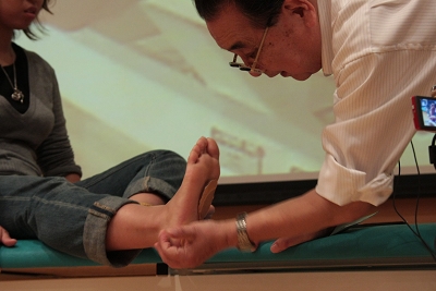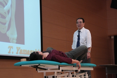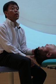 体幹のポイントを圧迫もしくは牽引するだけで、関節可動域が改善する。そんな魔法のような手技を先生は疲労してくれた。ほんの10秒ほど胸郭のあるポイントにアプローチをおこない可動域が改善したとき、会場にどよめきが起きた。次々と被検者の可動域が改善される。なぜそうなるのか・・・。「根拠はよくわからないが、結果は出ている。この結果を私は示した。根拠を知りたいのであれば、若い君たちがそれを示してくれ。」「私の手技や理論はあくまでも一つの事実として受け止めて、それが他者への刺激になればよいと思っている。」と先生は詳しくは語らなかった。