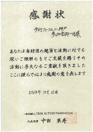 歩行フォーラムの参加費の一部を「TAKE ACTION」へ